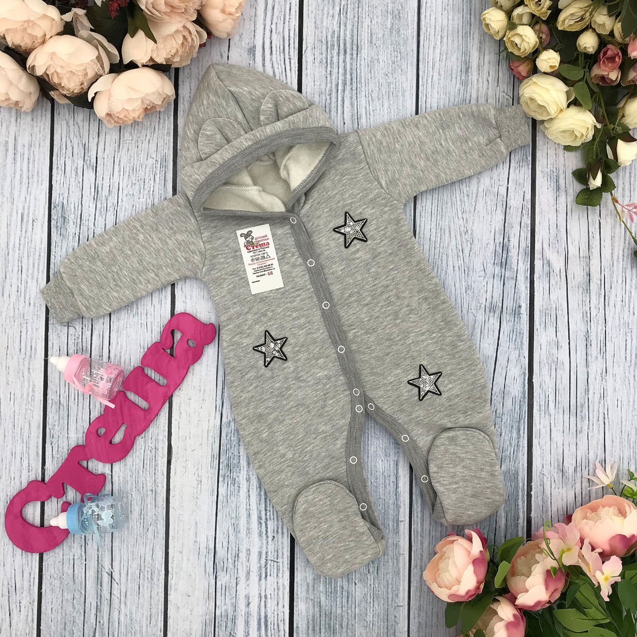 Теги: Купить оптом ясельный комбинезон из начеса. 219-С. Комбинезон ясельный, хлопок 65%, 35% ПЭ, футер с начёсом 62.68,74 цена,отзывы официальный сайт "Стеша Уфа"